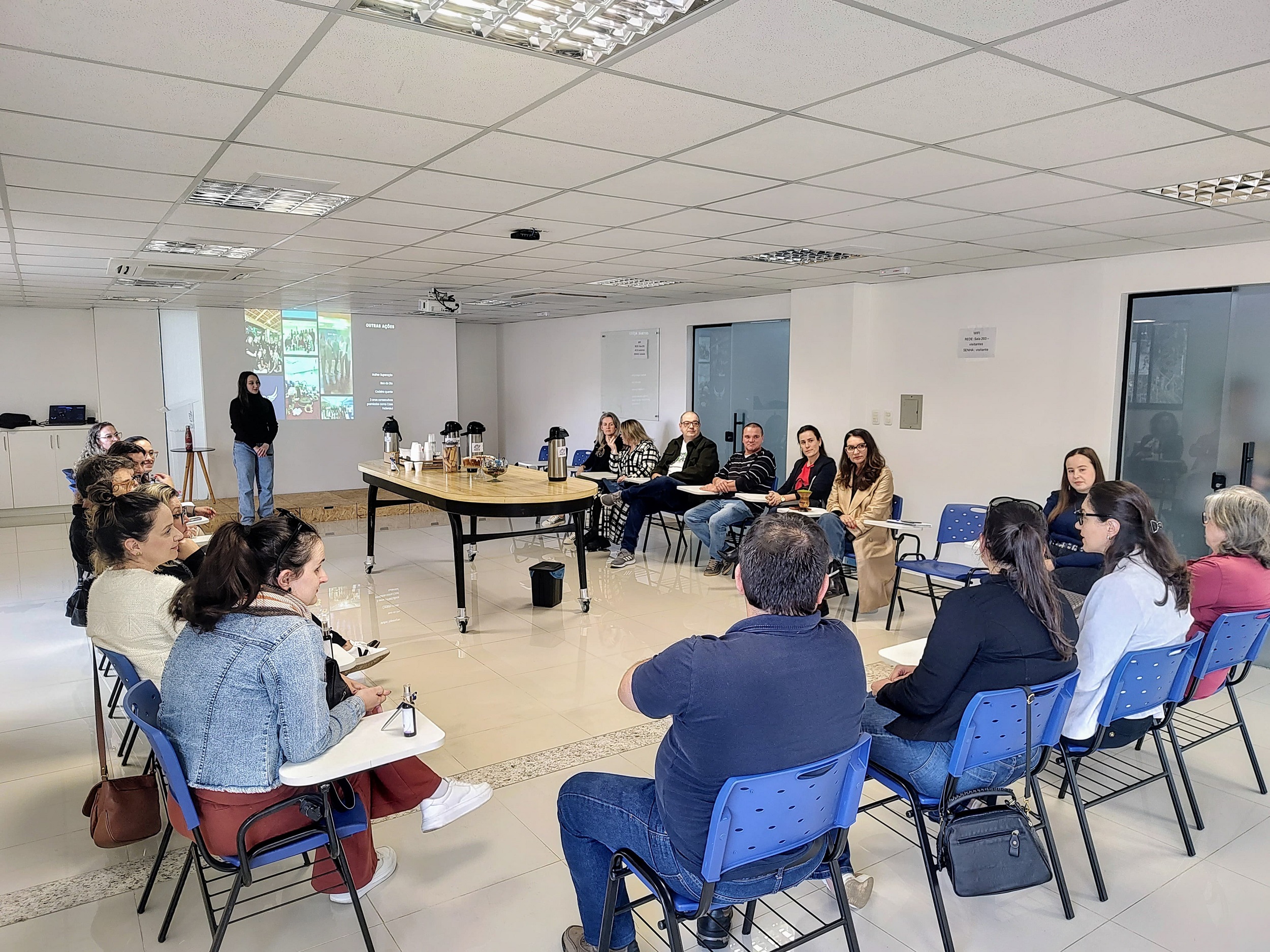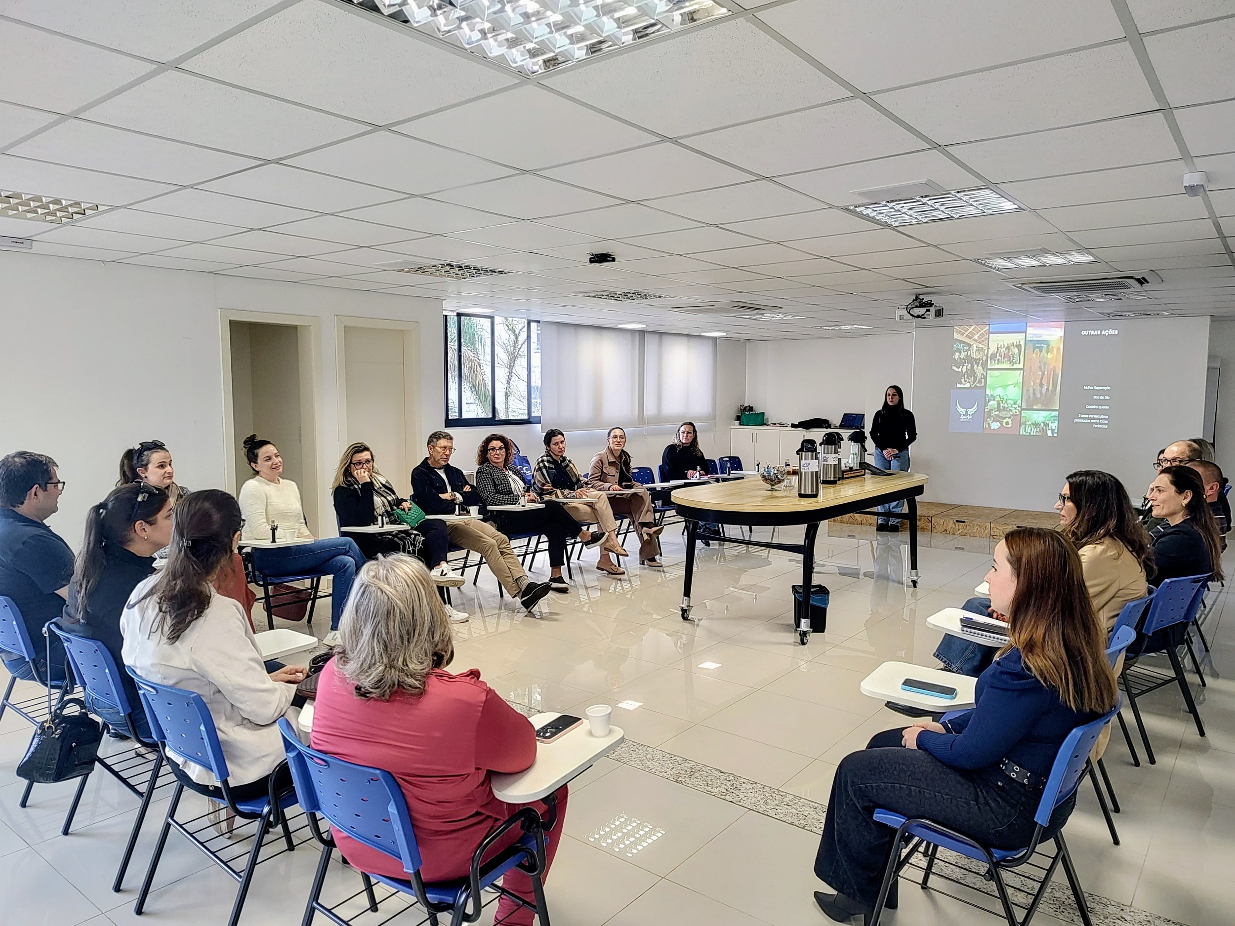 Durante a visita, foi realizada uma apresentação do funcionamento dos núcleos, suas metodologias, projetos e resultados obtidos ao longo dos últimos anos. A atividade teve caráter de benchmarking, buscando compartilhar boas práticas entre as entidades.
