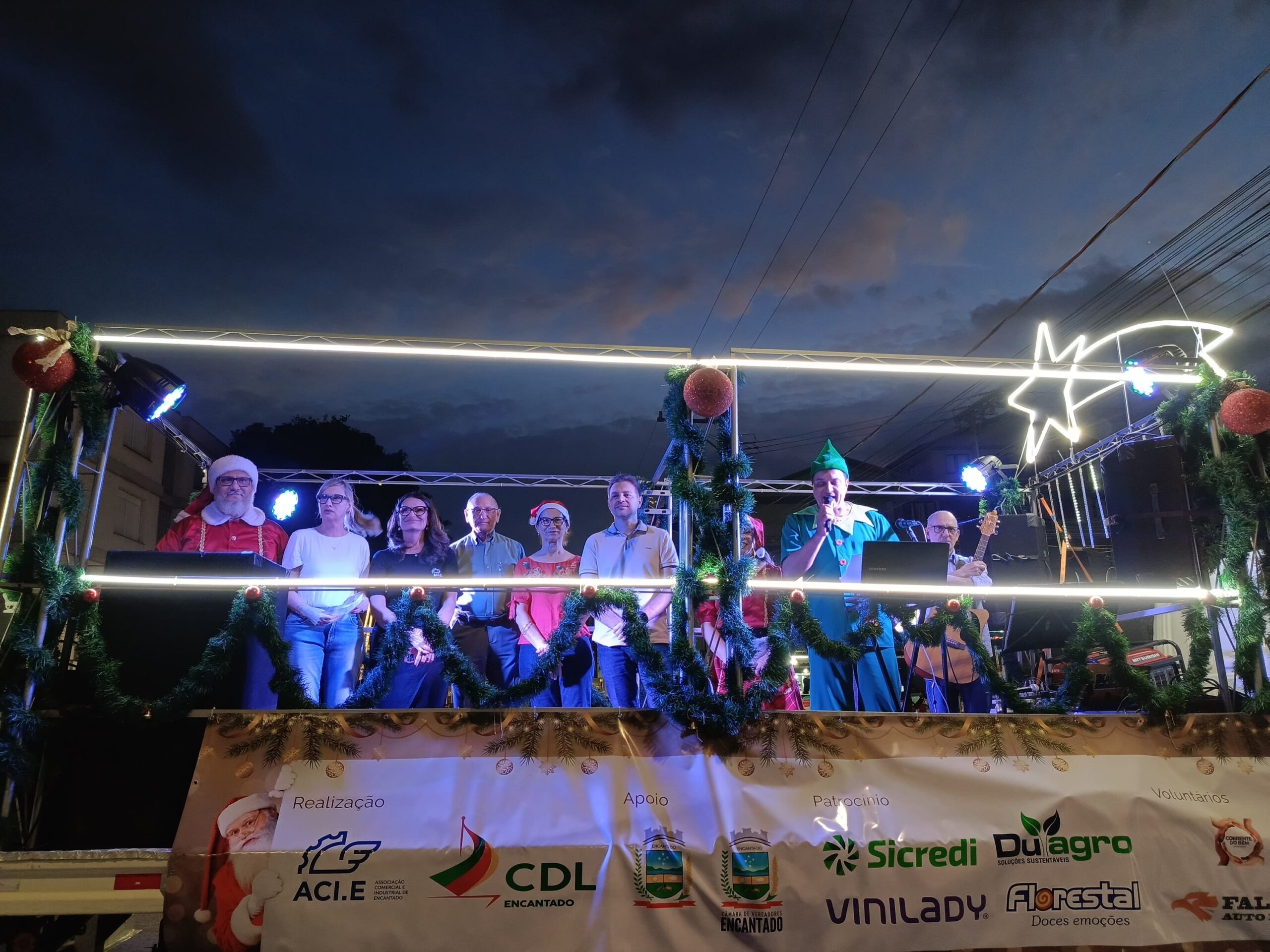 O Natal Mais Encantado segue até segunda, dia 23 de dezembro, e é uma realização da Associação Comercial e Industrial de Encantado (ACI-E) e da Câmara de Dirigentes Lojistas (CDL), apoio da Administração Municipal de Encantado e Câmara de Vereadores. O patrocínio é de Sicredi, Duagro, Vini Lady e Florestal, e parceria dos voluntários da Corrente do Bem e Falcão Auto Peças. Mais informações e a programação completa nas redes sociais @natalmaisencantado.
