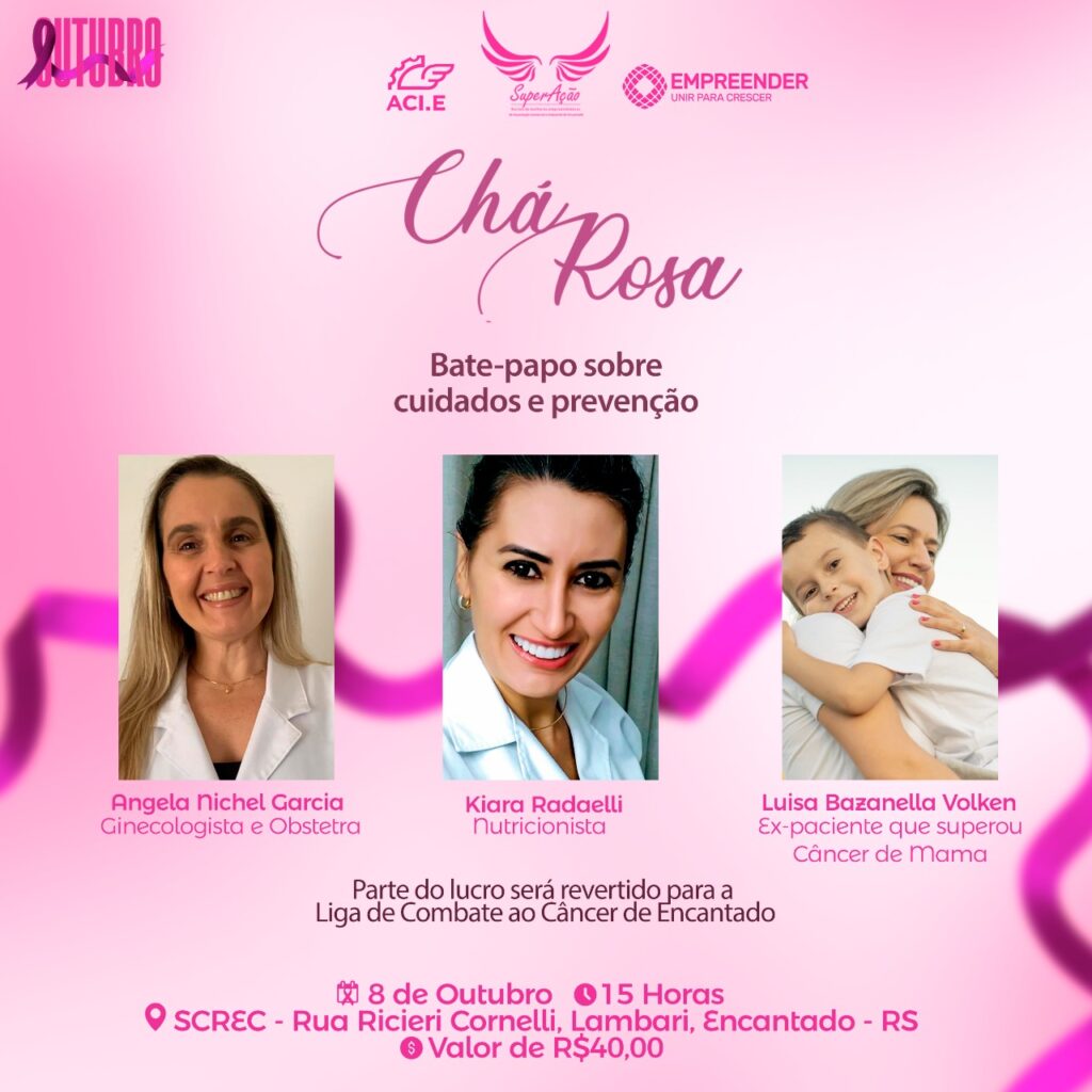 O Núcleo de Mulheres Empreendedoras SuperAção, da Associação Comercial e Industrial de Encantado (ACI-E), promove mais uma edição do Chá Rosa que, após o período de pandemia, volta a ocorrer presencialmente.