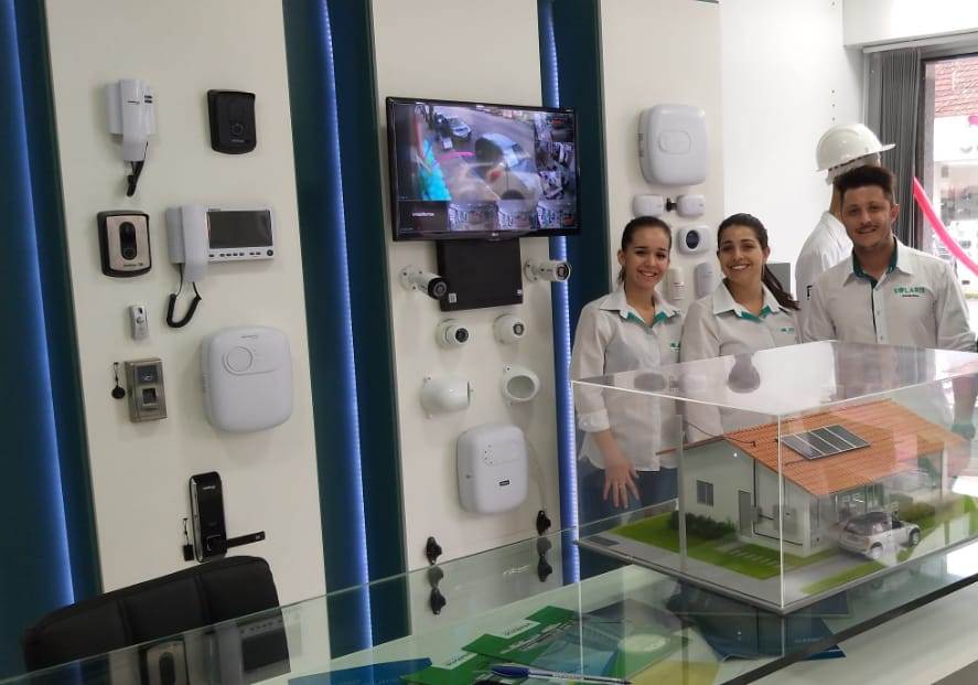 Rafael, gerente comercial, relata que o objetivo principal da empresa é a prestação de serviços diferenciados visando a agilidade e qualidade, em sistemas de monitoramento e energia solar. Segundo o gerente, Encantado necessitava de uma loja física especializada em segurança com tecnologia de última geração, com showroom para que as pessoas pudessem conhecer os equipamentos e suas funcionalidades.