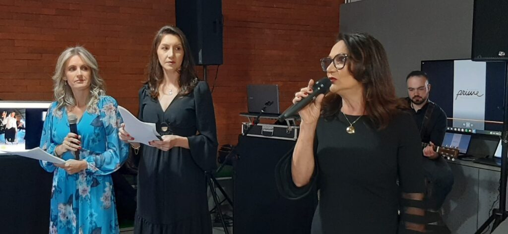 O evento reuniu 150 convidadas na sede social do Sicredi Região dos Vales, que aproveitaram para confraternizar, trocar experiências e assistir à palestra com a CEO da Ciamed Distribuidora Medicamentos e ex-presidente da ACI-E, Renata Galiotto, que falou sobre suas experiências como empresária e liderança feminina. “Somos mil e uma utilidades. A mulher se reinventa. Evoluímos muito em um curto espaço de tempo. A gente consegue enxergar o detalhe do detalhe”, afirmou Renata, primeira mulher a presidir a ACI-E e também a Suinofest, “um dos maiores desafios de minha trajetória, não podia fracassar”, confessou. A presidente do Conselho da Mulher Empreendedora da Federação de Entidades Empresariais do RS (Federasul), Simone Leite, também havia sido convidada, mas não pode comparecer devido a problemas de saúde.