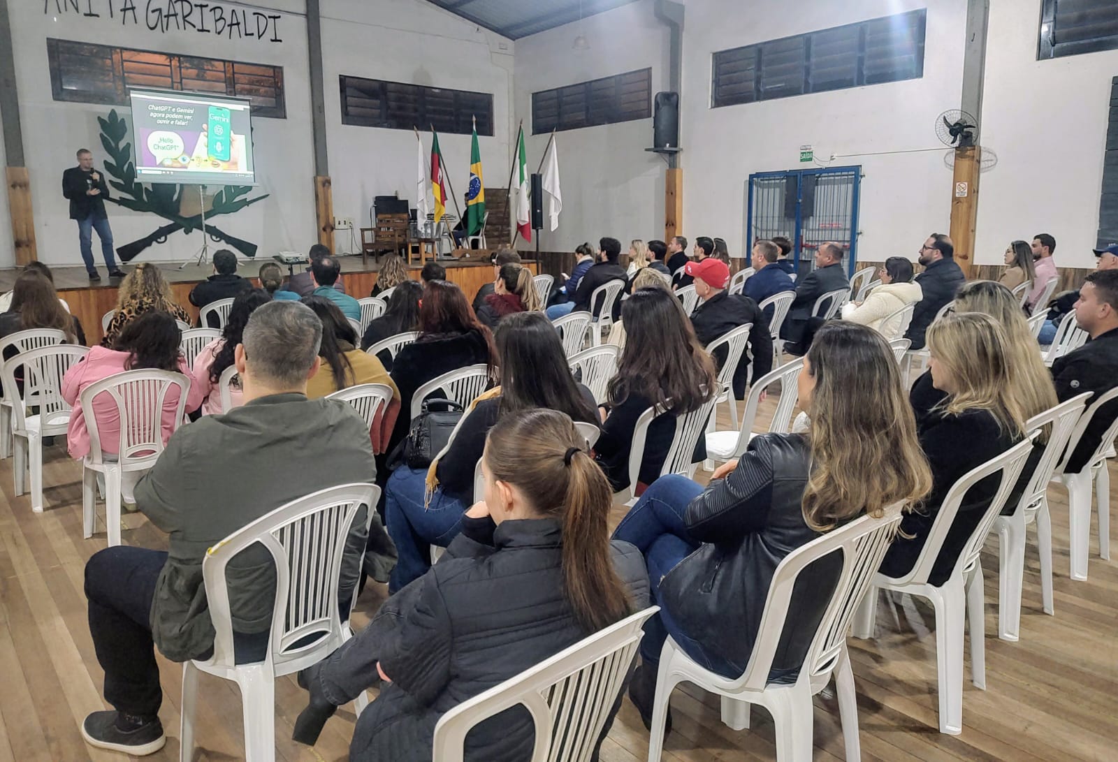 A Associação de Jovens Empreendedores do Vale (AJEV) e o Núcleo de Desenvolvimento de Pessoas da Associação Comercial e Industrial de Encantado (ACI-E) promoveram, na sexta-feira, dia 13, a palestra “Possibilidades da Inteligência Artificial para os Negócios”. O evento integrou a programação da Suinofest e foi realizado na sede do GAN Anita Garibaldi, no Parque João Batista Marchese, em Encantado.